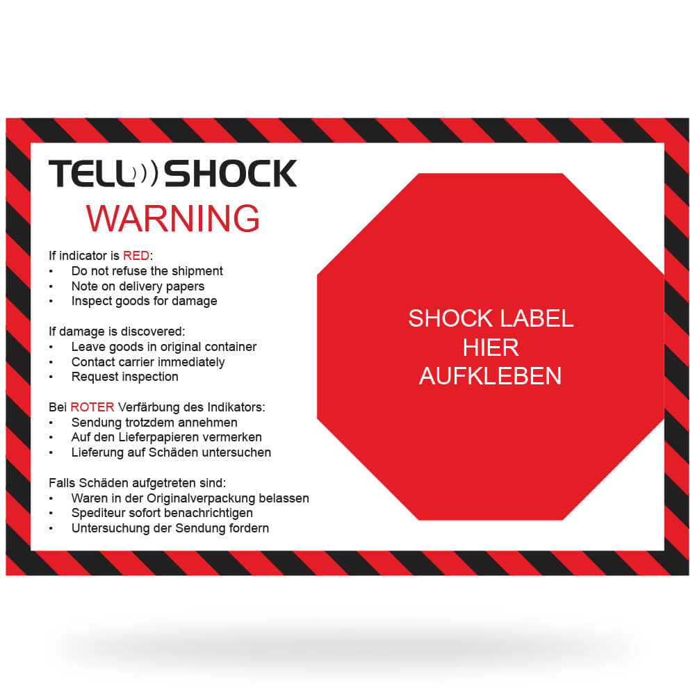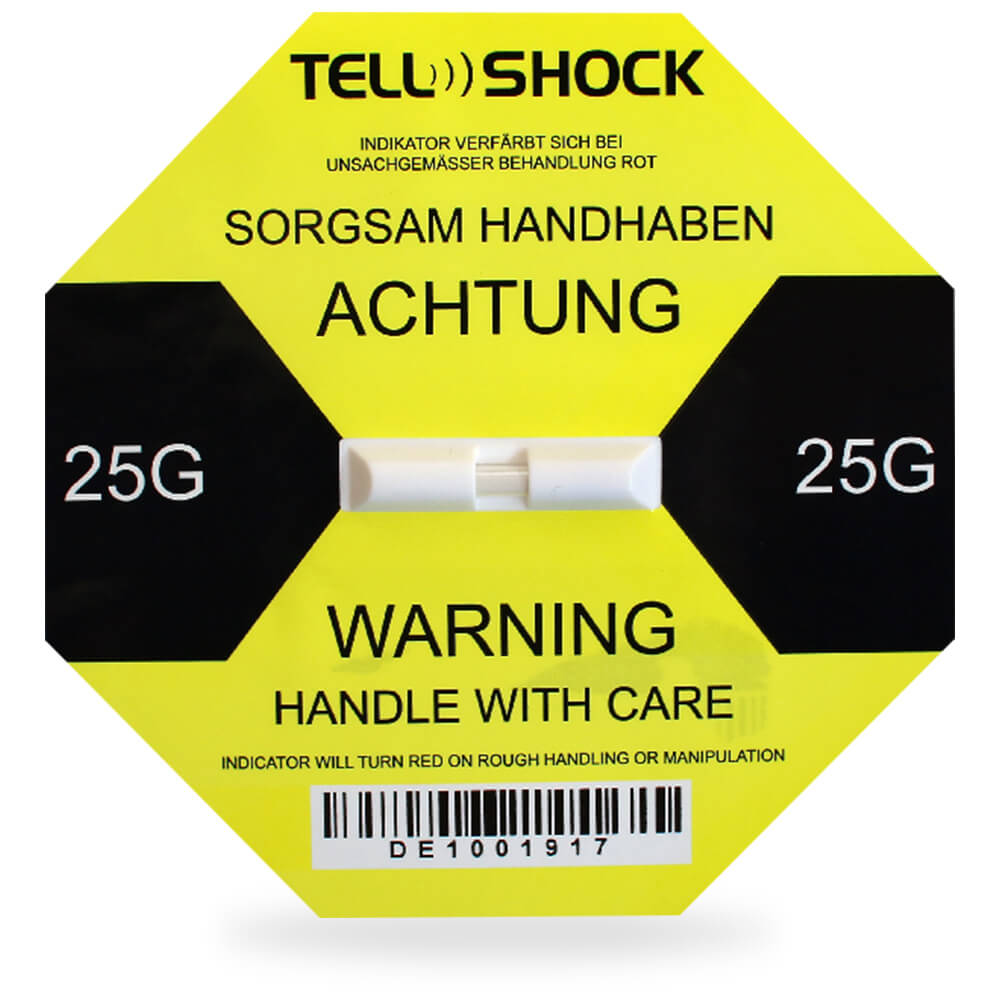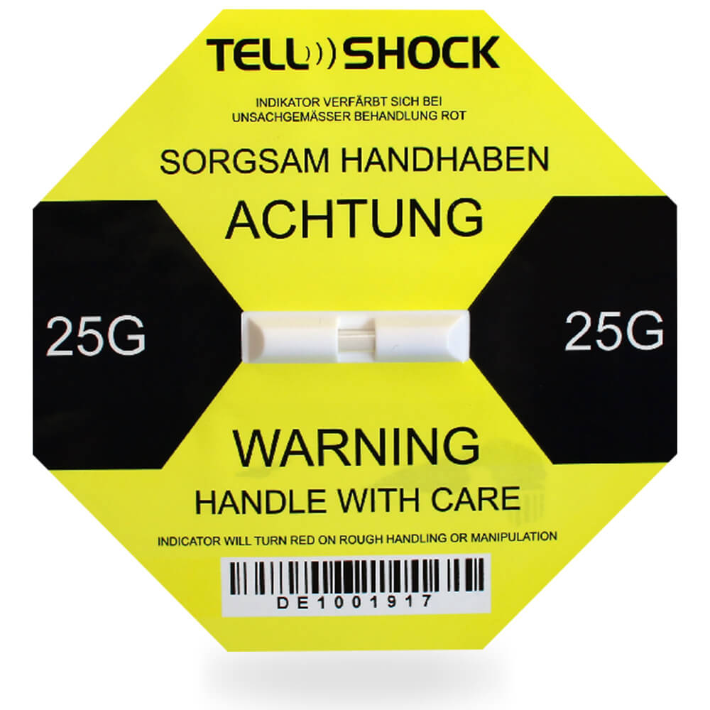 „ The TELLSHOCK label consists of a poweful adhesive sticker with a precision glass tube sensor. If the defined impact force of the TELLSHOCK is exceeded, the surface tension of the warning liquid breaks and irrevocably colors the indicator red. Each TELLSHOCK label is provided with an individual serial number, which prevents manipulation.... ”