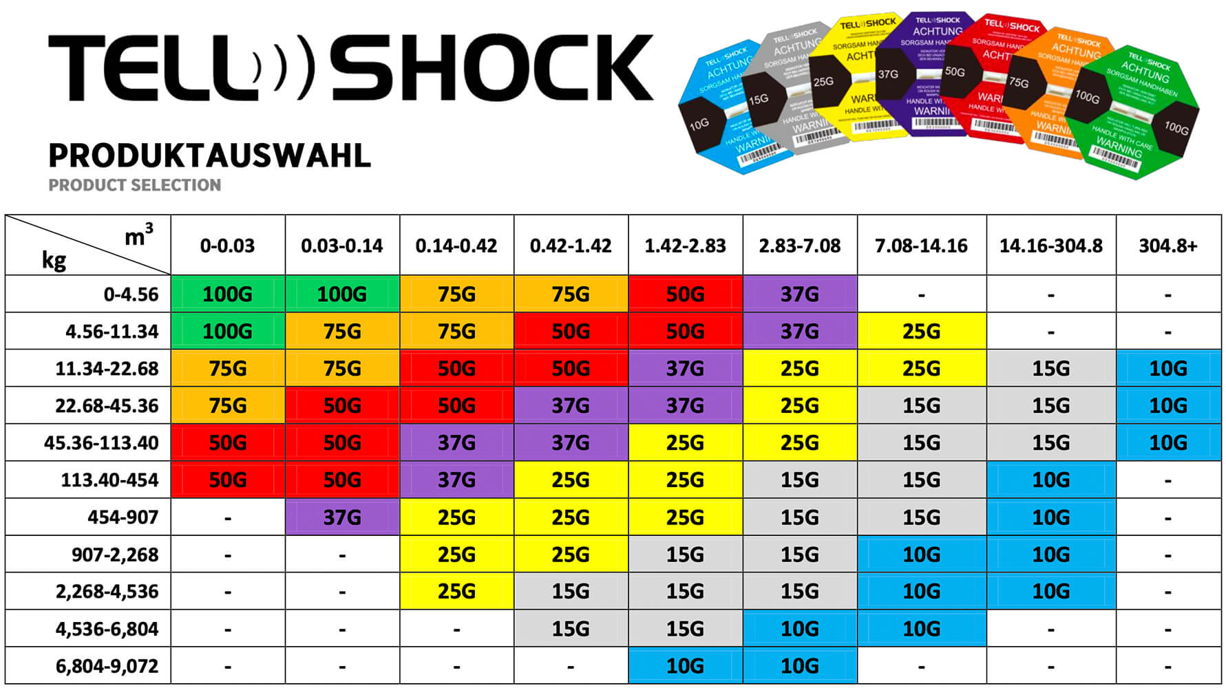The suggested values should always be used as a starting point only. Packaging and construction can influence the relationship between drop height and TELLSHOCK activation. Consult with us !