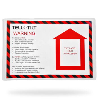Schutzfolie auf der Rückseite entfernen und den Indikator direkt am Versandgut anbringen. Der TELLTILT löst von „Weiß“ auf „Rot“ aus, sobald das Packgut um mehr als 85° geneigt wird.